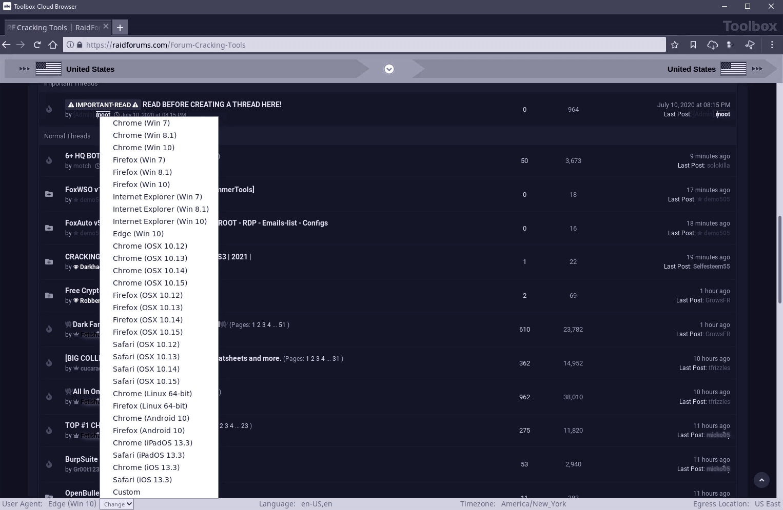 With Silo for Research's managed attribution functionality, you can completely customize how you appear to sites and people that you interact with online by manipulating a variety of your device details including language, time zone and keyboard settings, as well as the browser, OS and other elements. Using Authentic8's global egress network, you can adjust your physical location to appear to be coming from any of dozens of points around the world, showing a local IP address that never refers back to you or your organization.